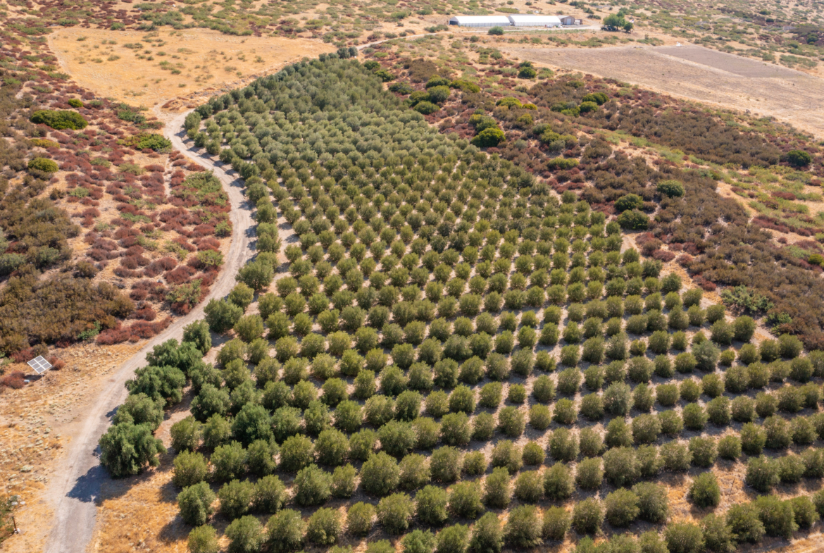 The agricultural zoning (A70) with an “O” animal designator provides vast flexibility for a variety of farming ventures. Currently, the property boasts 20+/- acres of prepped land ready for cultivation, with approximately 10+/- acres fully equipped with irrigation. The soil has been meticulously improved with cover crops, compost, and no pesticides, making it ideal for a range of crops beyond the existing olive grove. The 750+/- mature olive trees—spanning four distinct varieties: Frantoio (Italian), Casa Liva (Italian), Koroneiki (Greek), and Arbequina (Spanish) —are just the beginning. A large steel barn for storage of equipment and supplies, and two (30’x90’) automated greenhouses, complete with light deprivation technology and climate control systems, expands the potential for diverse agricultural endeavors, from specialty crops to exotic plants.
