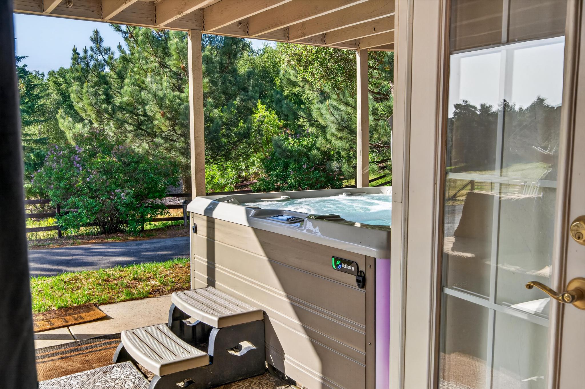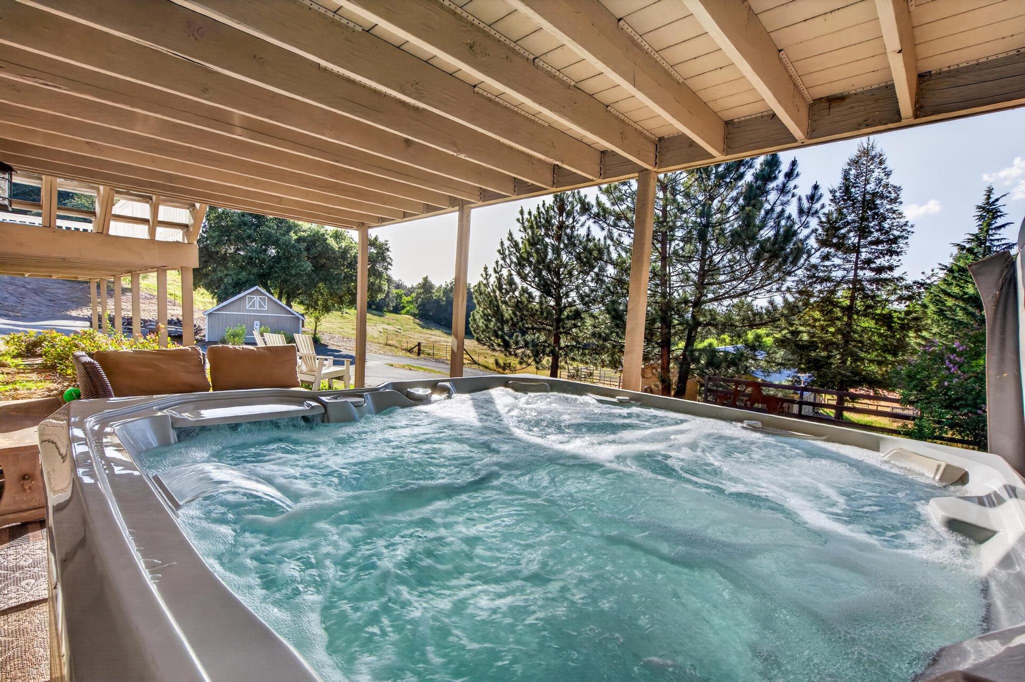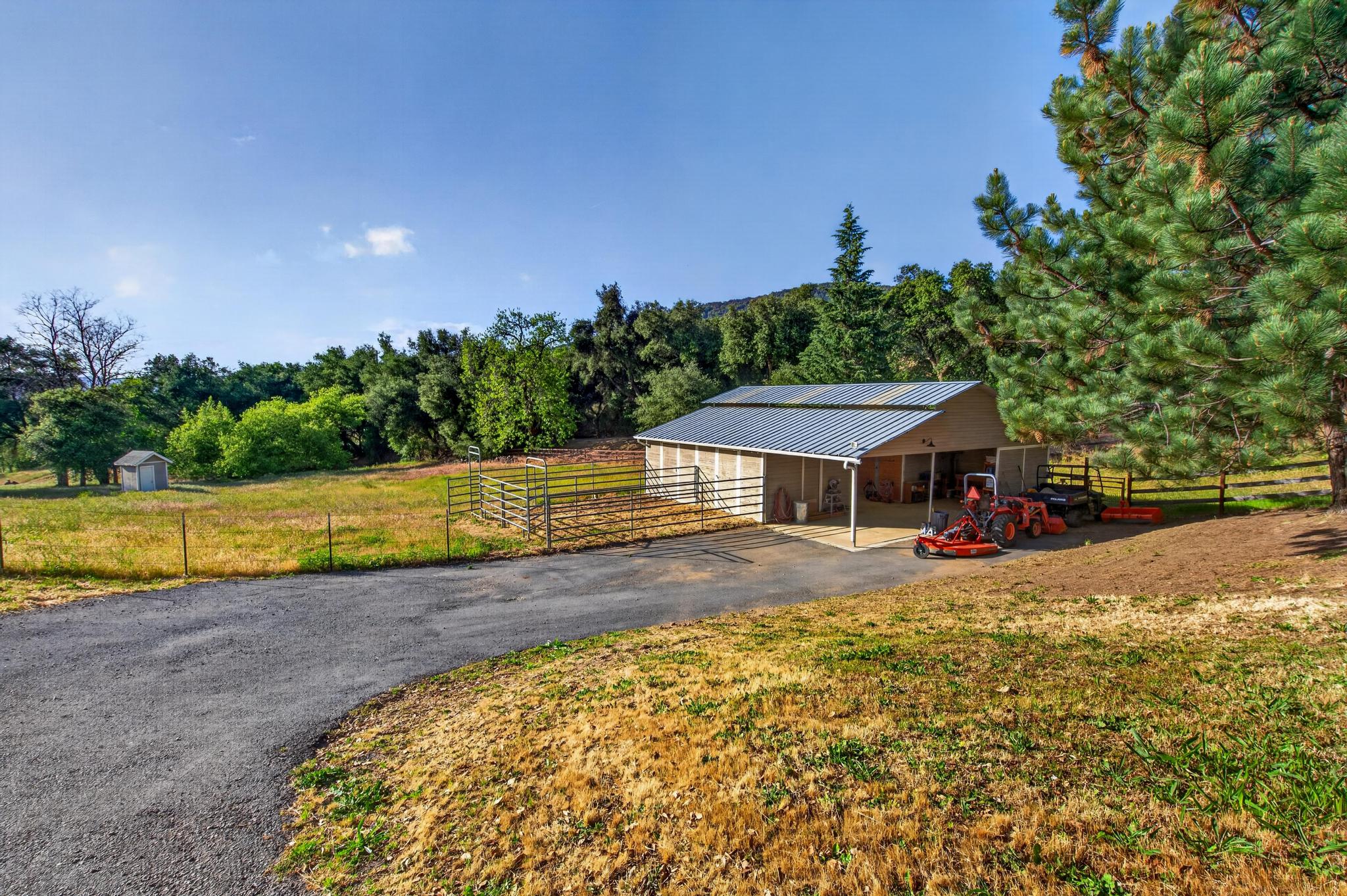 The property is well suited for a variety of uses. Zoned A72 with an O animal designator, it offers excellent potential for agricultural use, equestrian pursuits, or hobby farming. A three-stall barn with tack room, fenced perimeter and pasture, and multiple turnouts support a functional ranch setting. A private well, large holding tank, and a historic stone spring box dating to the late 1800s provide valuable and unique water resources. Additional improvements include: private jacuzzi, on-demand and supplemental water heaters, fire sprinklers throughout the home, central heating and air conditioning, upgraded flooring, a central vacuum system, a 14 kW backup generator, propane service, storage building, two 20-foot Conex metal storage units, ample parking, and space for a future ADU.
