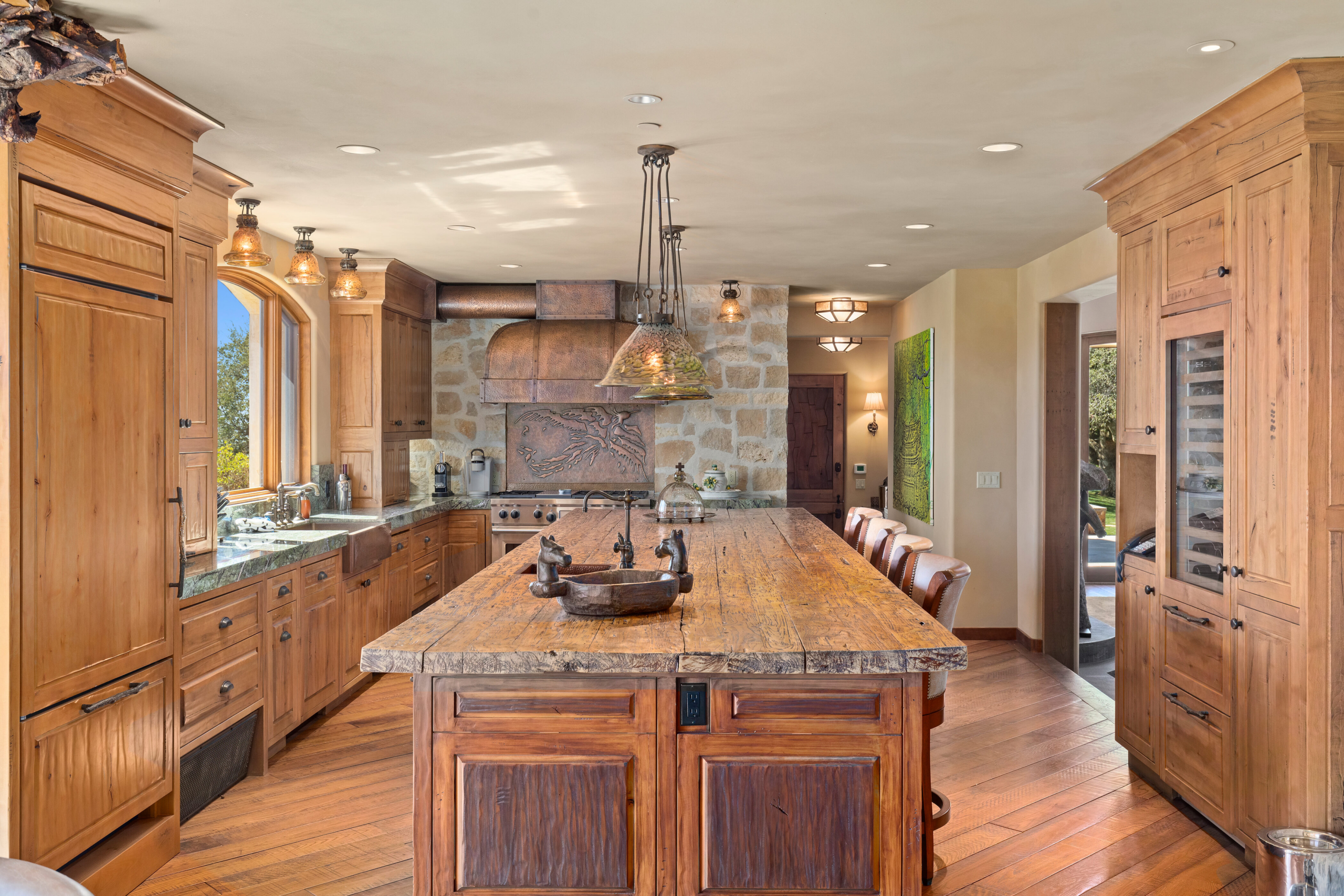 Elevated above the rolling ranchland, sits the architecturally stunning custom-built primary residence enriched with intricate finish detail, a masterpiece by architect Joseph McCarter Design and builder David McGuiness Development. From hand-carved wooden embellishments to ornate stonework, the harmonious blend of tradition and contemporary design creates an environment that is both comfortably functional and aesthetically beautiful. Embrace the opportunity of farm to table living with an extraordinary chef’s kitchen featuring professional grade appliances, ample storage, and an expansive culinary island. Spacious light-filled rooms frame panoramic views with luxurious amenities and offer many places to relax and unwind or entertain family and friends. Dual primary bedrooms each include a large ensuite, an expansive walk-in closet and plenty of space enhancing privacy, practicality, and versatility.
